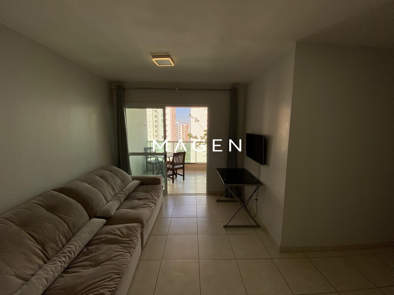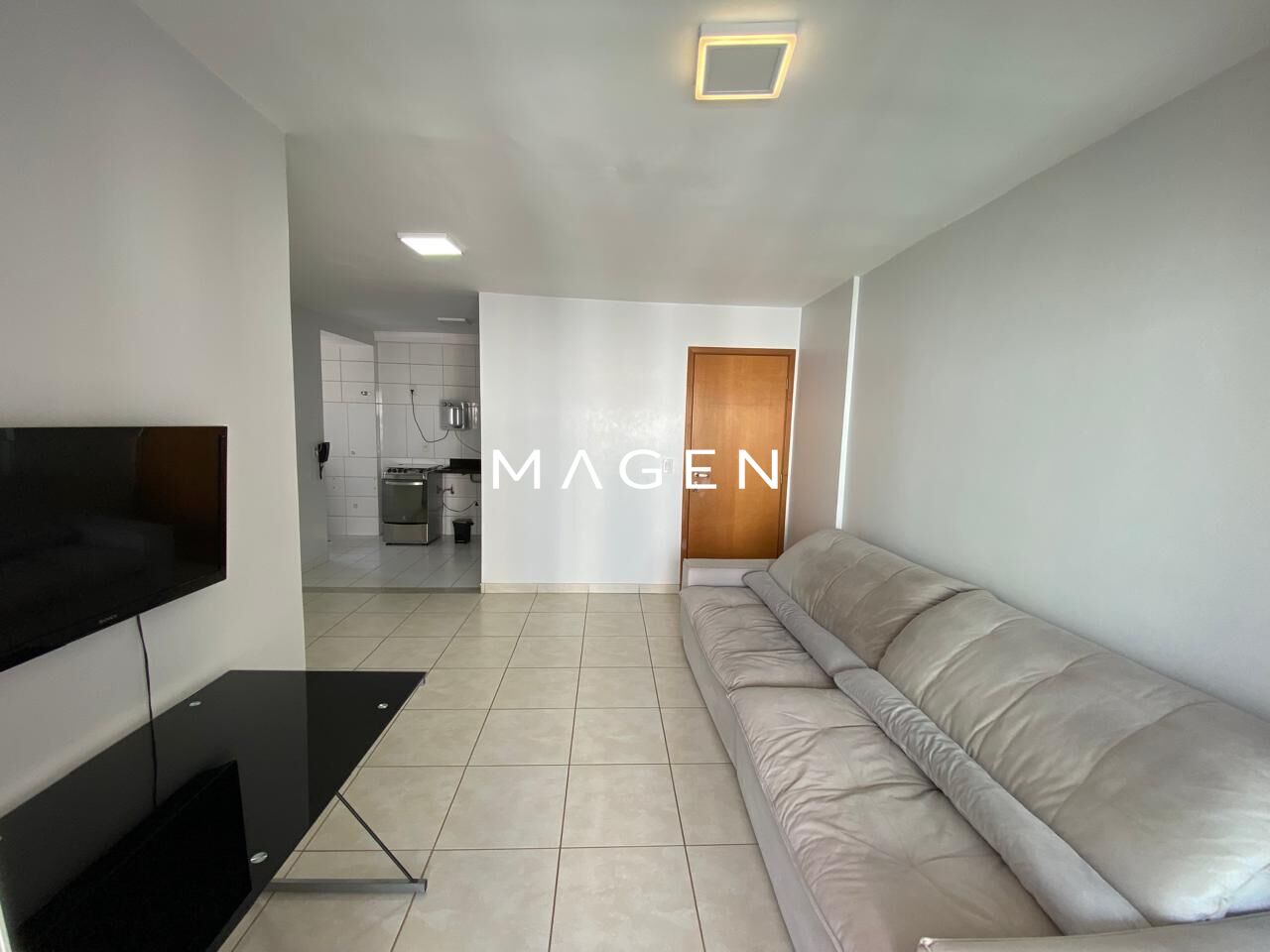Conta com sala para dois ambientes, integrada à cozinha e área de serviço, além de sacada com possibilidade de integração à sala.