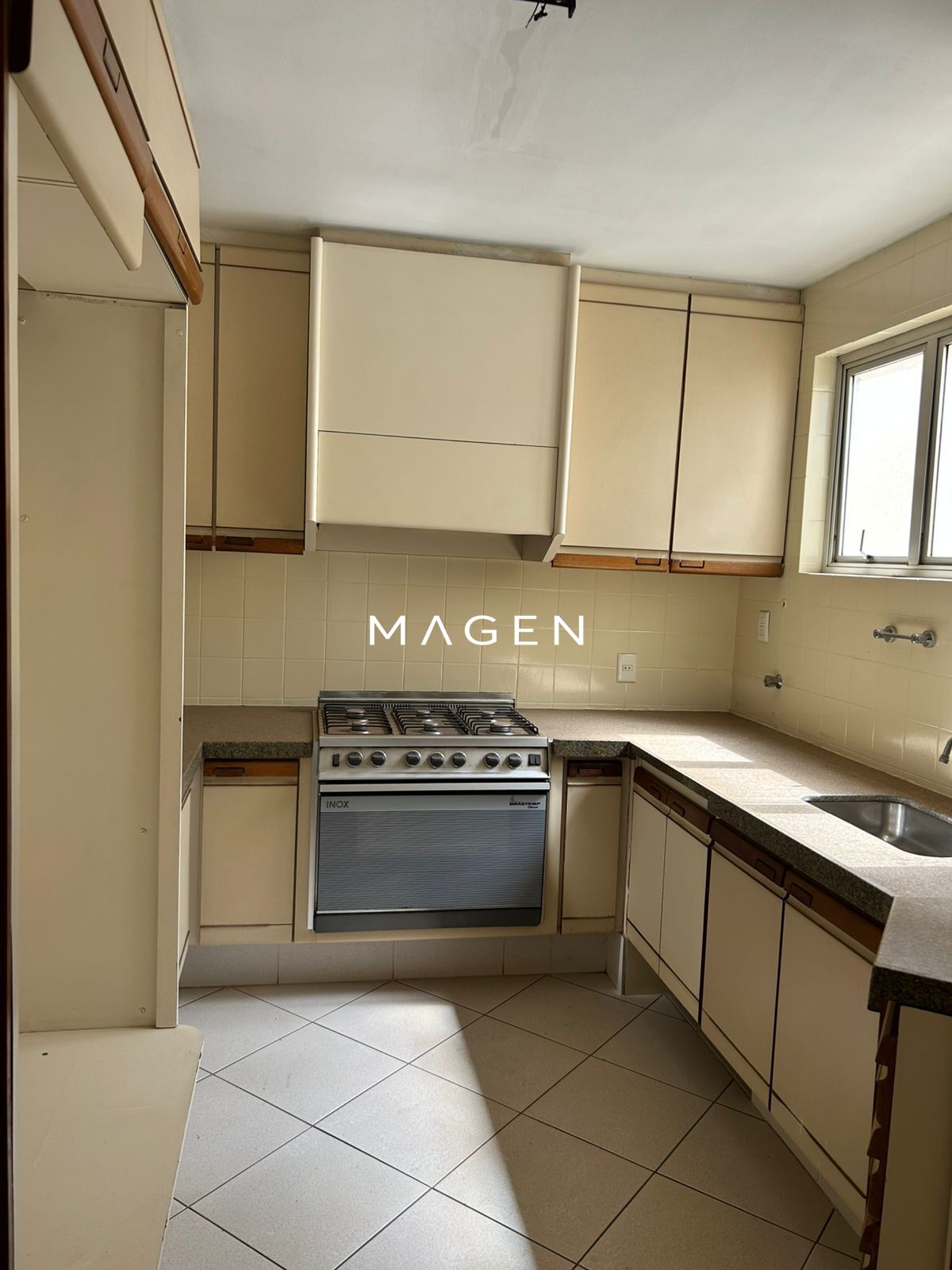 O apartamento possui 155 m² privativos, situado no 9º andar, com duas vagas individuais de garagem e escaninho de 5,5 m². Conta com quatro quartos, sendo duas suítes, sendo que um dos quartos foi integrado à sala, ampliando o ambiente. Dispõe ainda de banheiro social, lavabo, cozinha com DCE, área de serviço espaçosa e sacada ampla. Os armários em madeira maciça conferem qualidade e estilo ao imóvel, necessitando apenas modernização das portas.