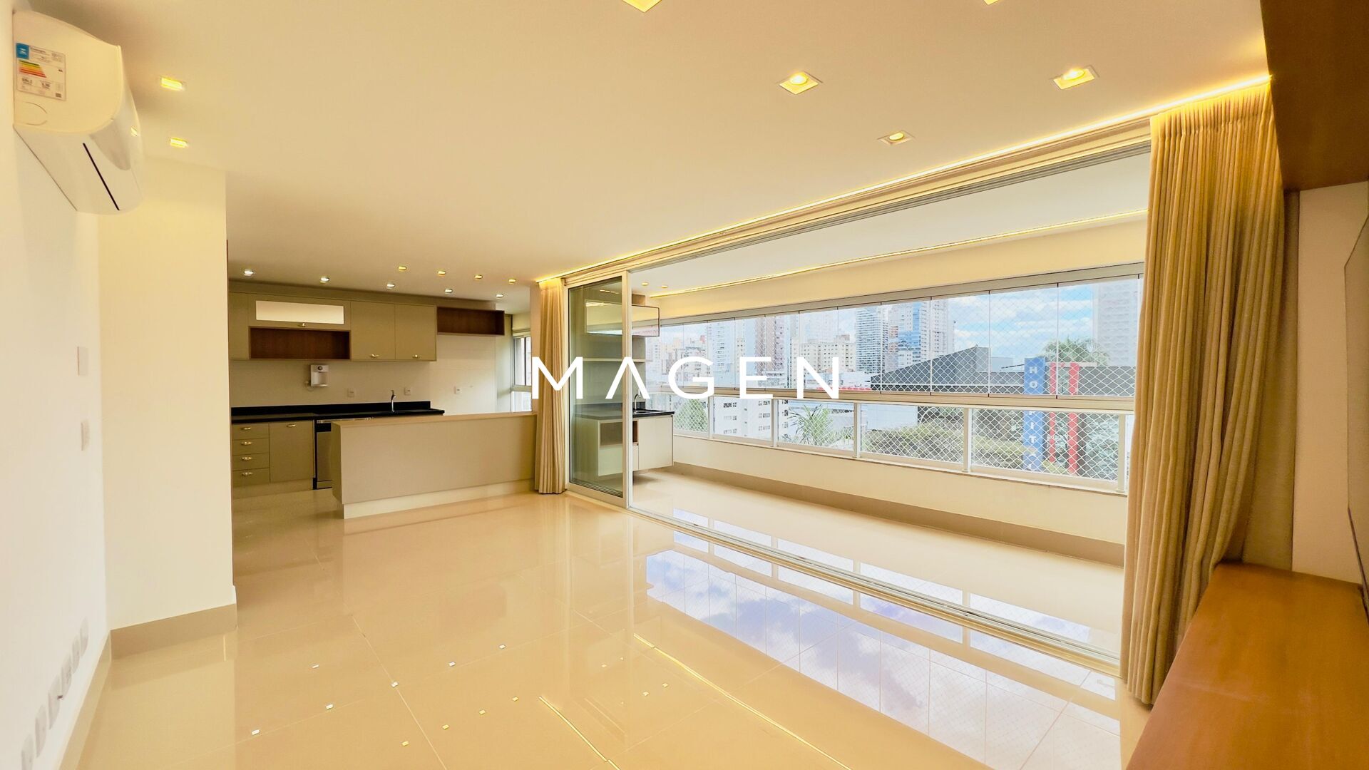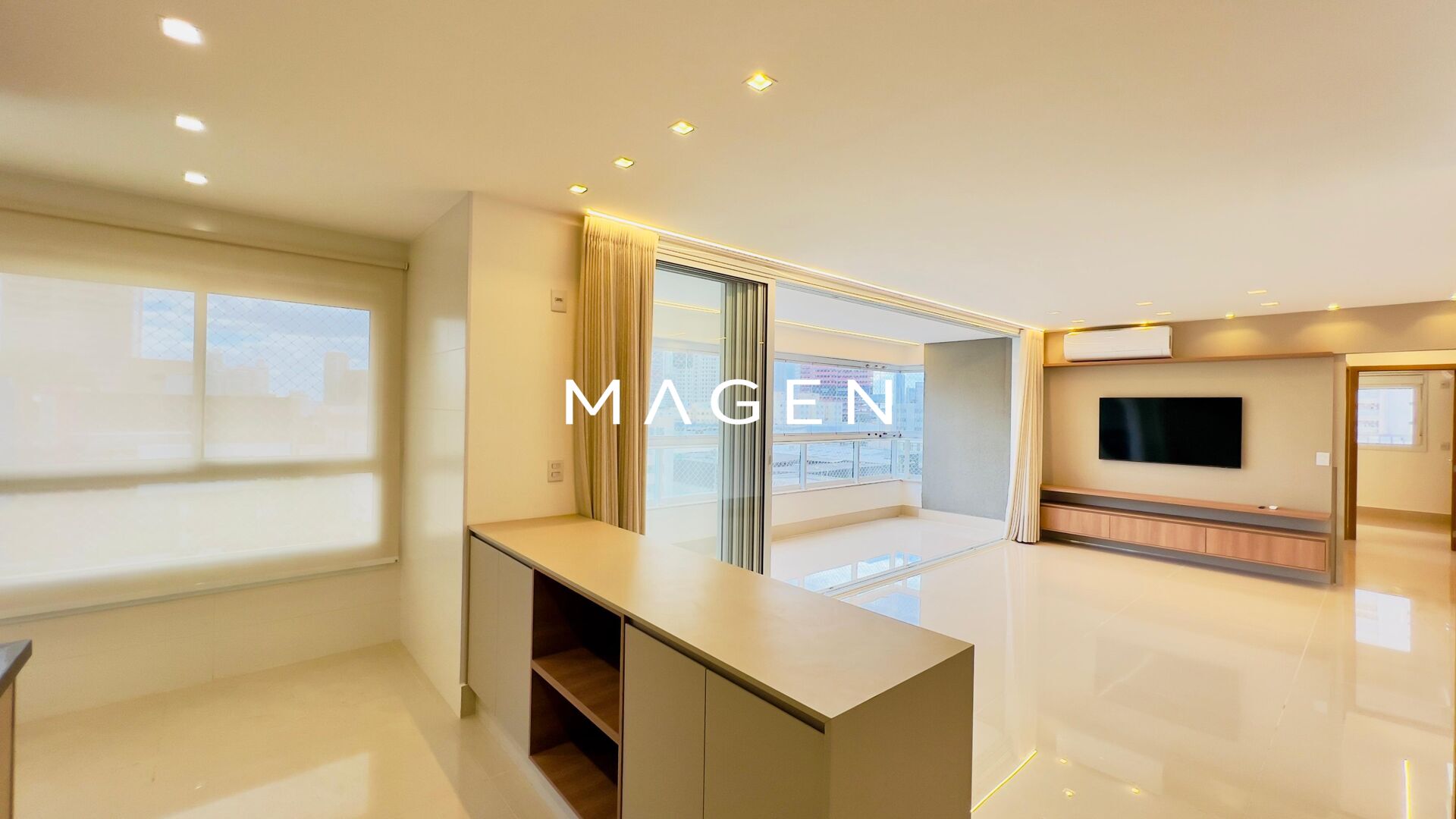 Apartamento sofisticado, com marcenaria Relicário, ar-condicionado e projeto luminotécnico completo em todos os ambientes.